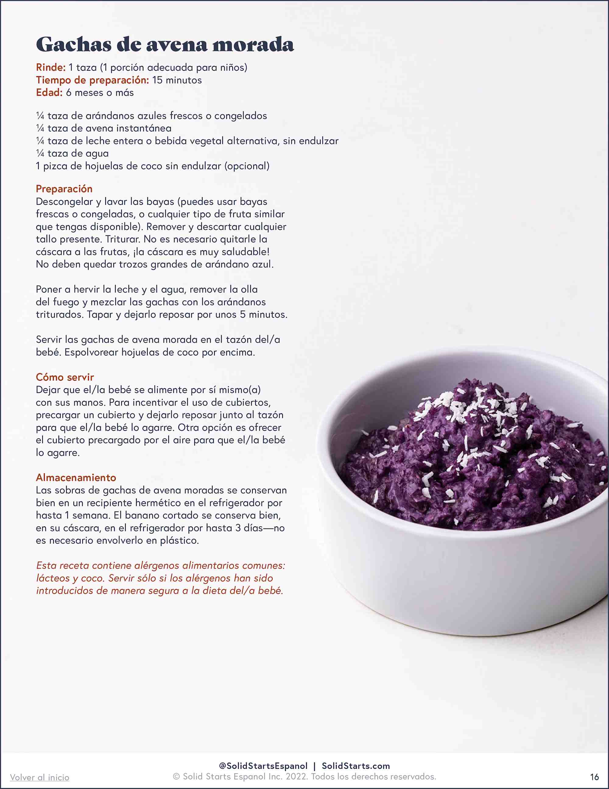 También compré su plan de ideas de comidas/recetas (mi favorito es el de almuerzos) y me encantan todas las ideas de recetas. Esto, y todo el contenido gratuito que tienen, ha marcado un gran cambio para mí. Mi pequeña de casi un año come TODO lo que le ofrezco. El otro día licué col rizada con leche de almendras y ¡ella lo disfrutó mucho! Es muy buena para alimentarse sola. No puedo agradecerles lo suificiente por todo su contenido. Utilizo su base de datos de alimentos todas las semanas. ¡Gracias por darme la confianza a la hora de servir alimentos a mi hija!, ¡Estoy profundamente agradecida! —Ellen