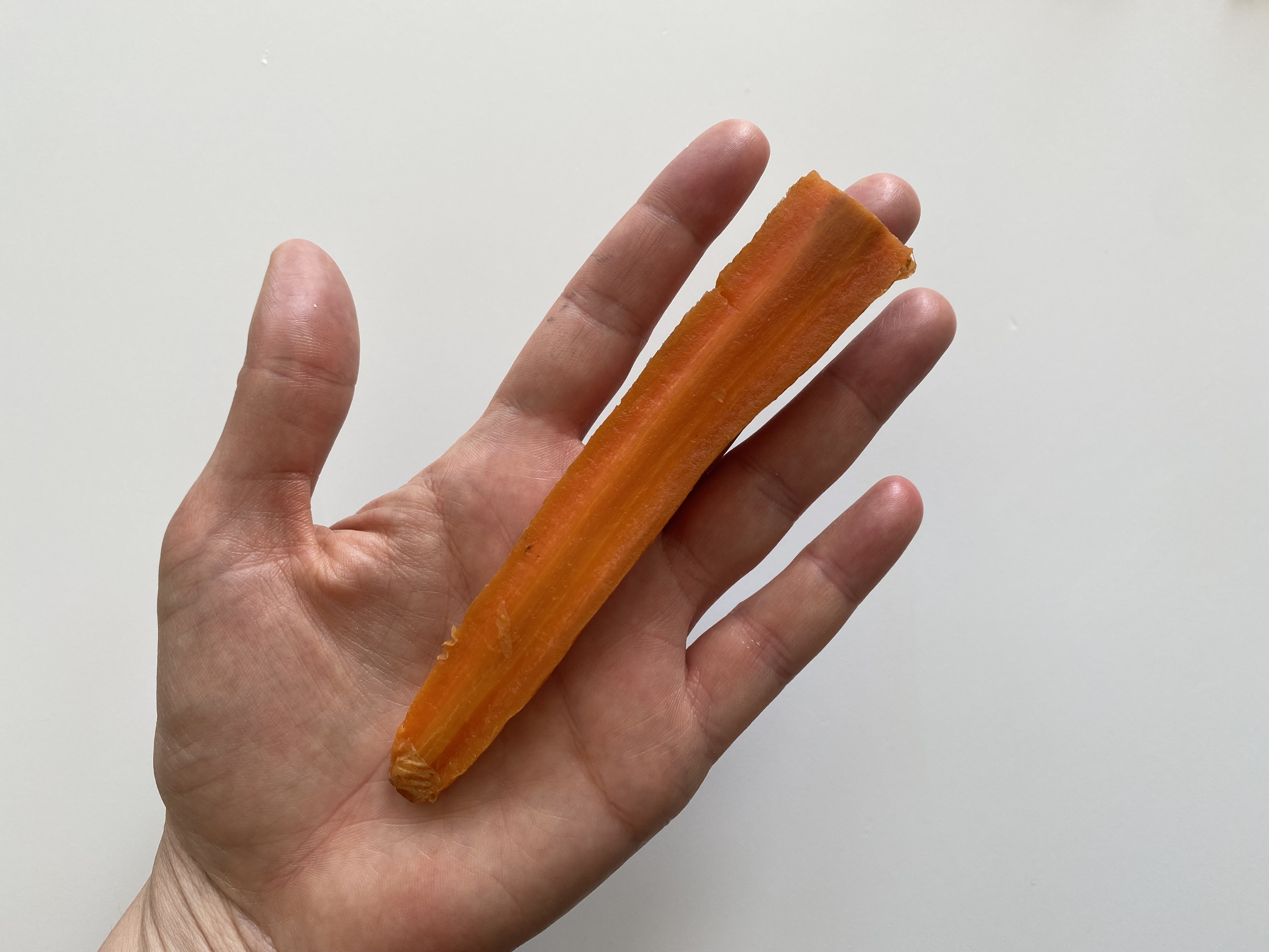 large enough for baby to hold with bits sticking out above and below the fist